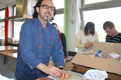 Frank Meurer bereitet mit Schülern der Passauer K-Schule ein fliegendes Bio-Buffet vor.